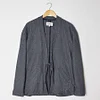 The Noragi Jacket is inspired by traditional Japanese kimono-wear. Made in England from a surplus cotton-wool blend, ití´s cut with a dropped shoulder and oversized, fluid shape. Left unlined, the Noragi features a self-fabric tie, two slanted welt pockets and corozo buttons on the cuffs (made entirely from nuts harvested from the rainforest floor). Wear over a striped organic cotton t-shirtwith casual chino trousers.