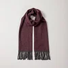 Our cashmere scarves are made in Italy from recycled fibres. Pre-owned garments are shredded and spun into new fabric that’s just as soft as virgin wool, and kinder to the environment. Woven with a burgundy herringbone pattern and finished with fringing at both ends. Pair with a jacket as the seasons change.