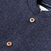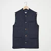 A true bestseller, the Nehru waistcoat is our specialty. This season we’ve gone for a Navy Blue Herringbone, made from a textured 100% Wool. Lighter weight than you’d imagine, the Navy Nehru waistcoat sits happily over your favourite knitwear. All the classic Nehru features are here, the mandarin collar, the welt pockets and not to mention our signature coconut buttons. Designed to allow free movement, the Nehru waistcoat is truly versatile and lends itself well to any occasion. Team it with our Elbow Patch Jumpers for a laidback, easy look.