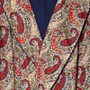 A luxury paisley dressing gown made in England from Liberty London cotton. The print is based on an archival paisley and dates back to the mid 20th century, contrasted with navy piping and a soft cotton lining. Featuring a shawl collar, chest, side and interior pockets and a self-fabric tie, pair this dressing gown with matching paisley pyjamas and cashmere socks.