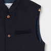 Introducing our hero piece, the Navy Blue Nehru Waistcoat. Made in Britain from a super soft Wool and Cashmere blend. It is of course, as always, the very best quality surplus material. All of your favourite Nehru features are here, the mandarin collar, the welt pockets and of course our signature coconut buttons. Designed to allow free movement, the brilliance of a Nehru is its versatility. For those smarter occasions, team your Nehru with a Grandad shirt for that double mandarin-collar look. Or when the weather cools down, team it with one of our Pure Wool Jumpers.
