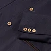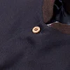 Our bestselling Nehru jacket is back by popular demand, this time in a super soft, surplus navy Wool and Cashmere blend. The jacket is single-breasted with that classic Mandarin collar that you can expect from a Nehru. The collar and welt pockets are in a contrasting brown Birdseye wool. On the front are lower jet pockets and one breast welt pocket. Inside you’ll find two pockets, one on each side. Finished with our signature coconut buttons and lined with 100% Navy Satin, the classic Nehru is made to be versatile. Keep it casual and throw on one of our Organic Cotton T-shirts underneath.