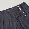 These Navy Formal Trousers are made in England from surplus Italian wool with a subtle houndstooth check. Cut with a slimmer leg and a medium rise, they also feature a hidden pocket ideally sized for stashing wedding rings – perfect for grooms and ushers. Finished with internal brace buttons, side adjusters and a brass zip fly, pair with a morning suit and double breasted waistcoat.