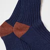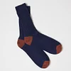 Thick ribbed socks made from a soft wool-cashmere blend. Navy with a rust red contrast heel and toe. Pair with cotton boxers and a wool dressing gown for luxury lounging.