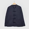 Inspired by the bleu de Chine, a French take on traditional Chinese workwear. Made in England from sturdy cotton twill, it features hand-made frog buttons (a braided knot and loop), two patch pockets with hidden-entry pockets on the side seams. Pair with a grandad collar shirt.