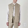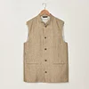 The Nehru Waistcoat is updated for spring in a herringbone patterned surplus linen – a fabric known for its light weight and breathability. Made in England, it features our signature Mandarin collar, three welt pockets, and is fastened by our distinctive coconut buttons. Wear with matching trousers and a Linen Grandad Shirt.
