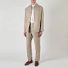Essential for summer, the Oatmeal Linen Trouser are made in England from crisp surplus linen with a herringbone pattern. Cut with a slimmer fit and a medium rise, this flat-fronted style features a brass zip fly, internal brace buttons and side buckle adjusters. Wear with a matching Linen Nehru Waistcoat and Grandad Shirt.