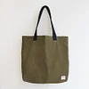 This Olive Green Canvas Tote Bag is designed for daily life and leisurely weekend trips. Crafted from durable cotton canvas with a handy internal pocket (ideal for wallets and keys), it features a contrasting black webbing handle. Fill with boxers and a few organic cotton t-shirts.