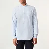 An update to our Overhead Grandad Shirt in soft Oxford cotton with new Codelite® buttons – a traditional material made from biodegradable milk casein. Cut with a regular fit, curved hem and chest pocket, wear with a Nehru Jacket and casual cotton trousers.
