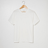 A soft grey organic cotton t-shirt with raglan sleeves and a wide ribbed neckline. Wear yours under a Nehru jacket.